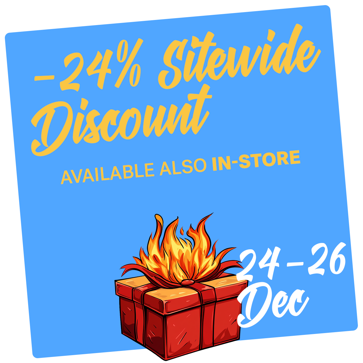 Here’s the last day, Christmas Eve! And for those of you who didn’t have time to grab gifts that go under the tree tonight, we offer you a 24% discount across the entire website & in-store too. Better late than never. Have a holly, jolly Christmas y’all!